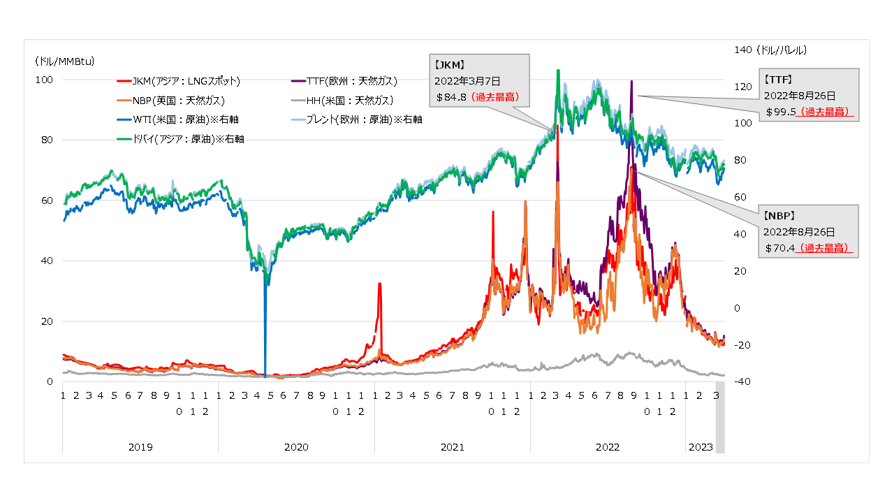 工場(製造業)の省エネ対策として電気代の削減が大きな課題となっています。ロシアのウクライナ侵略などが起因して、2021年から上昇傾向にあったエネルギーコストですが、2022年には、さらに高騰することとなり、世界の天然ガス市場は過去最高値を記録しております。