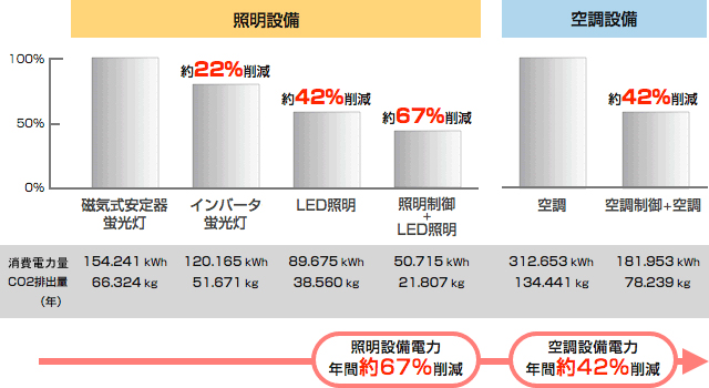 LED照明や高効率の空調機器の導入により消費電力を抑え、エネルギーの効率的な運用が可能となります。