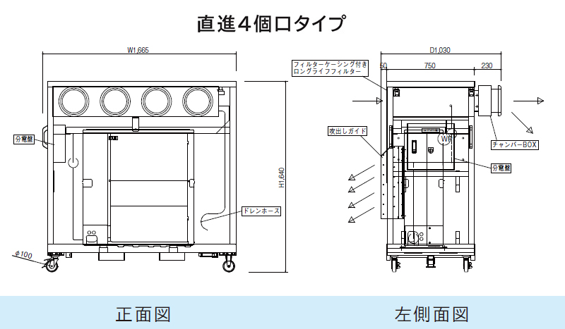 W1,665×D1,030×H1,640(mm) ※機器、取っ手、チャンバーの 跳ねだし部含む |