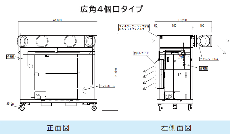 W1,680×D1,200×H1,640(mm) ※機器、取っ手、チャンバーの 跳ねだし部含む |