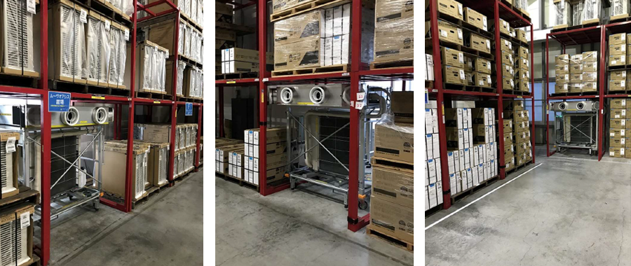 ラックの間にすっぽり入り、フォークリフト作業の邪魔にならずに済んだ。