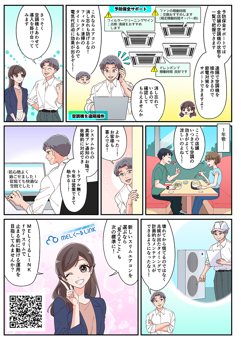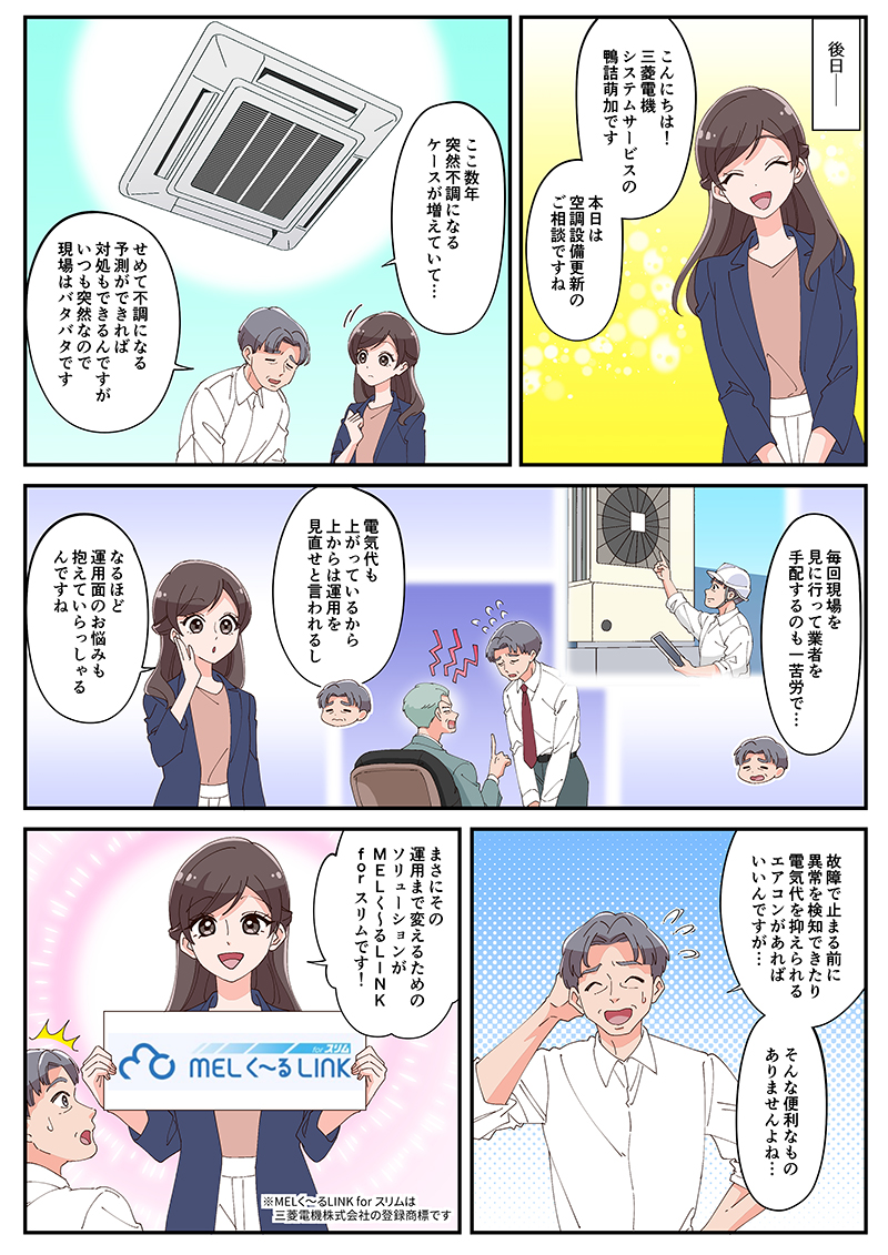 三菱電機システムサービスの営業社員、鴨詰萌加(かもづめ もえか)が製品やサービスについてマンガで解説します。