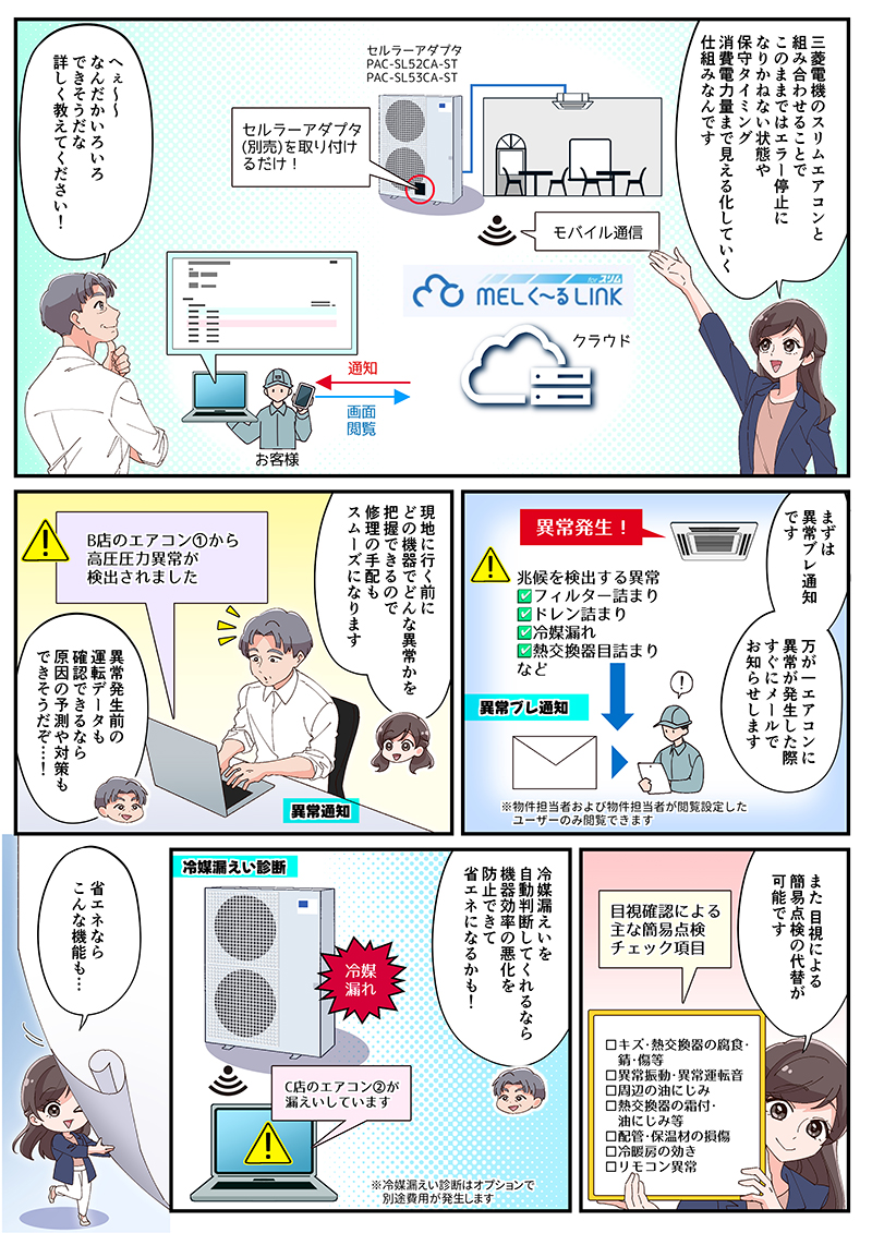 モバイル通信で空調機の遠隔管理を実現する「MELく〜るLINK for スリム」。